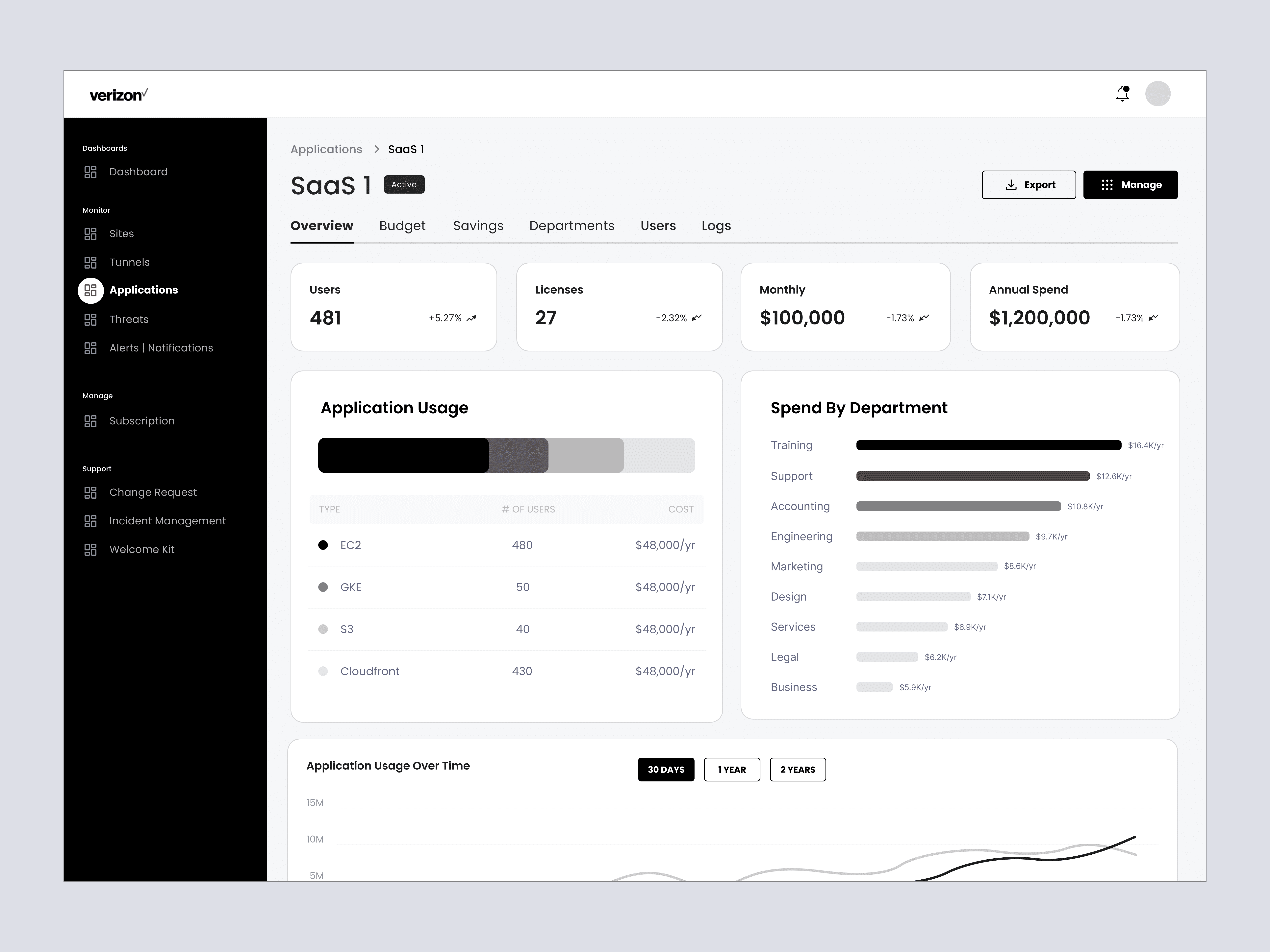Verizon MultiCloud is an enterprise platform that helps organizations manage SaaS applications across a multi-cloud environment. The goal of this work was to create a clear, scalable way to understand usage, control spend, and identify cost-saving opportunities, all within a single, consistent experience.